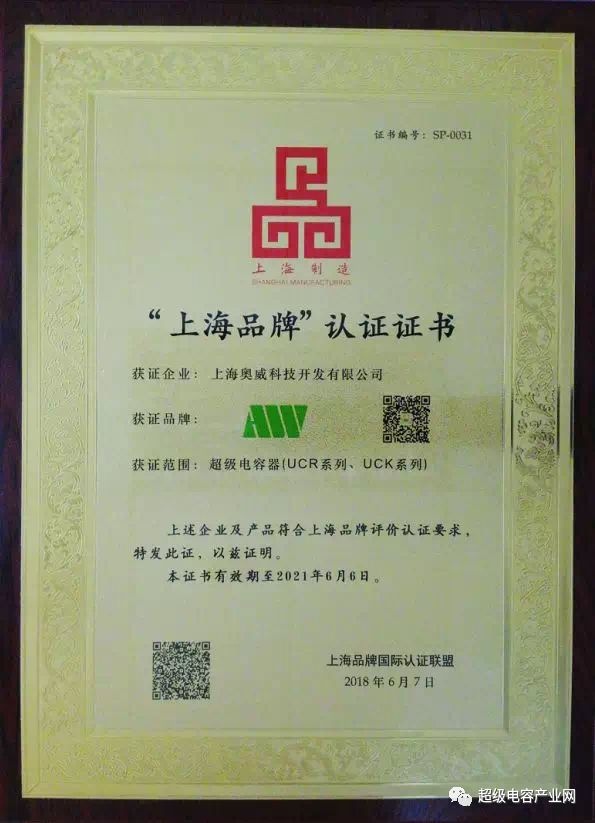 作为上海先进制造业的结晶之一,奥威超级电容器荣获“上海品牌”认证,这不仅是对奥威20余年自主创新的一种充分认可,也是企业不断提升产品品质和市场竞争力的动力。